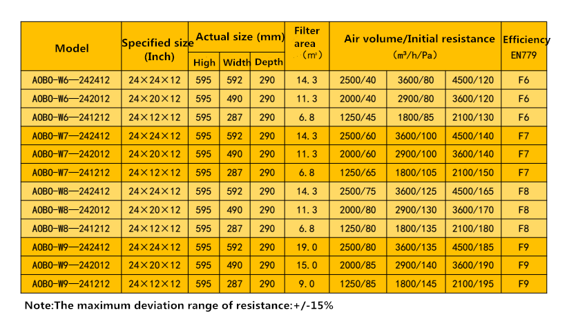 Filtro de aire de banco en V