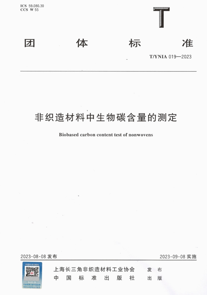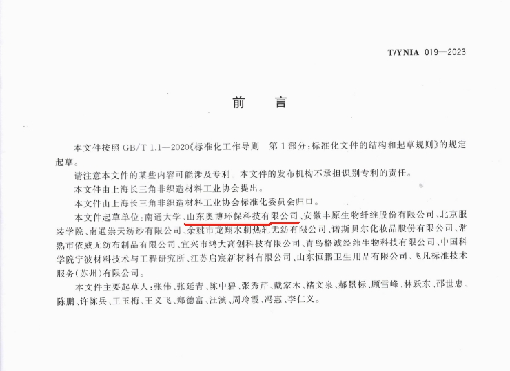 T/YNIA019-2023《非織造材料中生物碳含量的測(cè)定》由上海長(zhǎng)三角非織造材料工業(yè)協(xié)會(huì)權(quán)威發(fā)布,山東奧博環(huán)??萍加邢薰緸橹饕瓿蓡挝?。